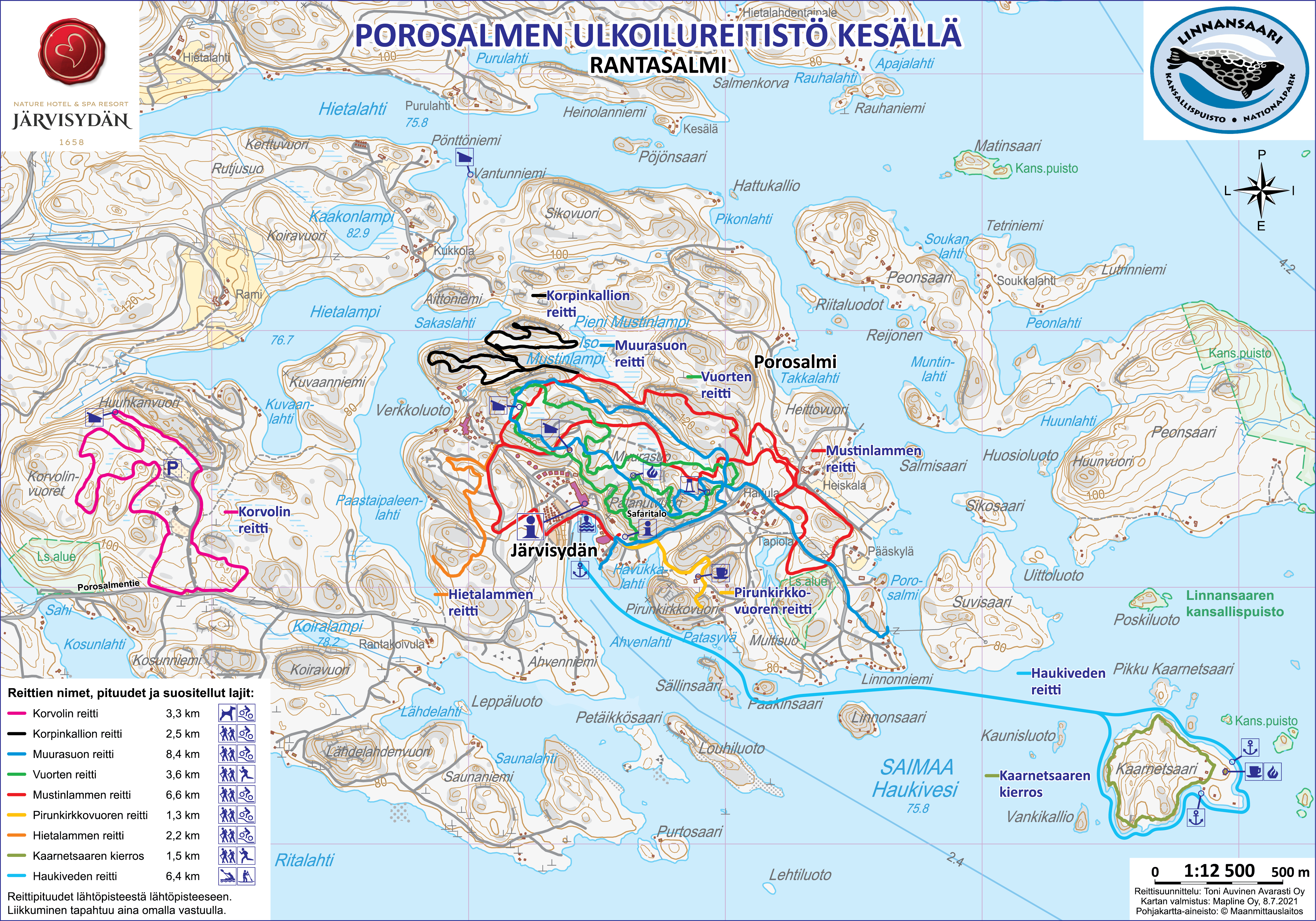 The usage of the outdoor route is always at your own risk and insurance. On the route, you are always responsible for the safe use of your own or rented equipment, and take into account the effects of weather conditions (water, snow, ice, wind, frost, slipperiness, heat, etc.). Every man’s rights both justify and oblige: All people whether residing in Finland or just visiting have the right to enjoy nature anywhere in the Finnish countryside regardless of land ownership. The legal concept of “Everyman’s Right” in Finland extends immense freedom to roam but comes with some serious responsibilities.